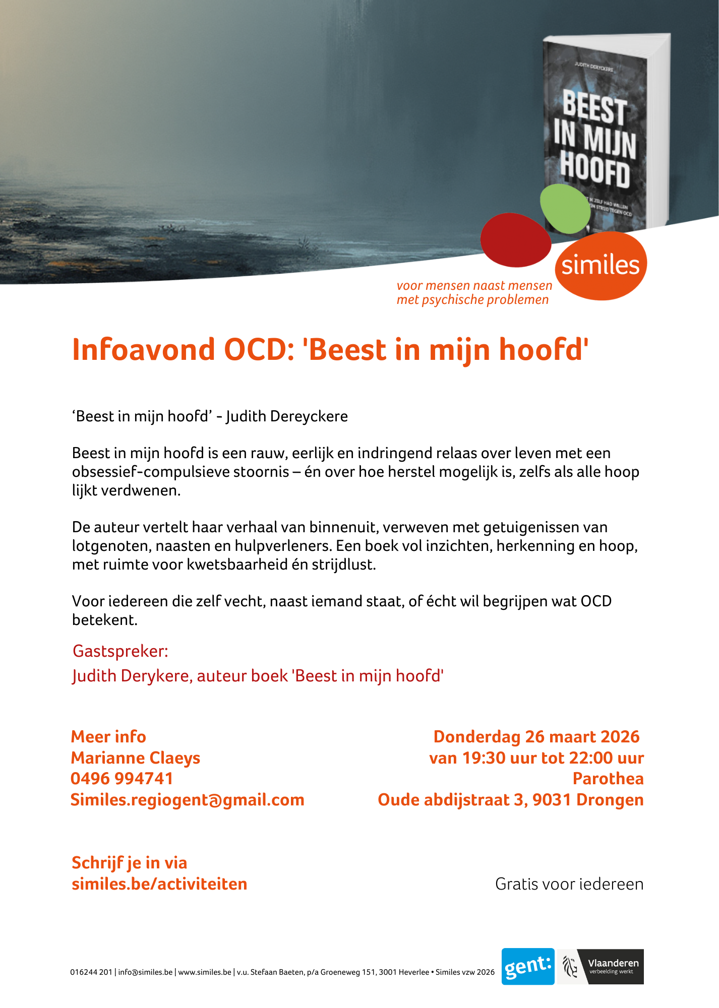 Hou zeker 1 december vrij, voor de ‘Viering van 40 jaar Similes Regio Gent’ met een poëtisch Pianoconcert speciaal geschreven voor families en naasten die te maken hebben met een psychisch kwetsbaar persoon. Programma volgt binnenkort.